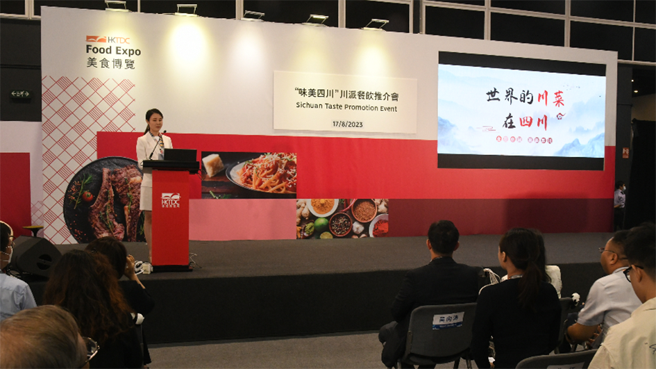 由四川省商務(wù)廳主辦,四川省商務(wù)發(fā)展事務(wù)中心承辦的「味美四川」川派餐飲推介會(huì)今日在香港會(huì)議展覽中心舉行。出席的主要嘉賓有香港貿(mào)易發(fā)展局西部地區(qū)首席代表周宏、四川省商務(wù)廳服貿(mào)處處長(zhǎng)熊金華、四川省人社廳流動(dòng)管理處處長(zhǎng)黃杲、港九勞工社團(tuán)聯(lián)會(huì)副主席譚金蓮、樂山市進(jìn)出口商會(huì)會(huì)長(zhǎng)吳英,以及四川省市州商務(wù)主管部門代表,川港兩地企業(yè)及協(xié)會(huì)代表等。