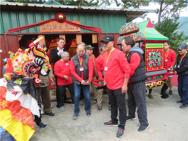 村民、善信魚貫參觀煥然一新的古廟,西貢區(qū)的麒麟隊、醒獅隊陸續(xù)到賀。