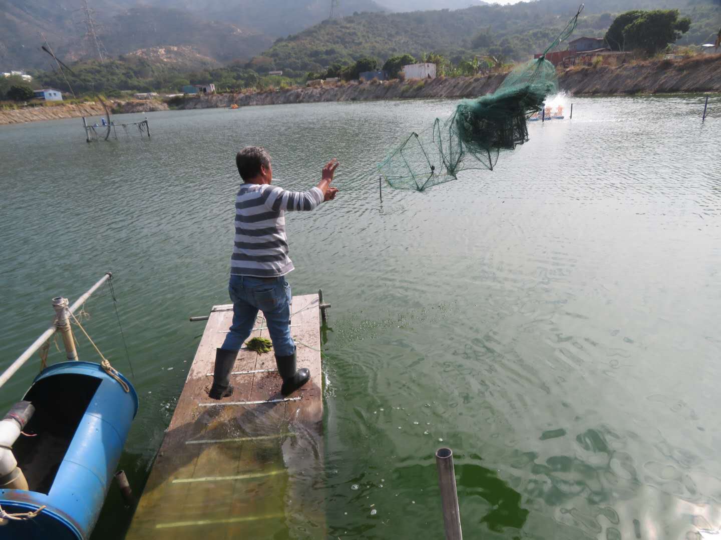 租了5個塘養(yǎng)南美白對蝦的朱松旺說,自己很喜歡釣魚,但發(fā)覺用來做魚餌的白對蝦很貴,萌生飼養(yǎng)的念頭,7年前向廈村鄉(xiāng)鄧族租了祖堂地,初初養(yǎng)時蝕本,因?yàn)榈B(yǎng)蝦要引入適度鹹水,但海灣鹹水受堆填區(qū)污染,死了不少蝦。後來回內(nèi)地取經(jīng),購入過濾缸及測試儀器,不時監(jiān)察,終搞掂水質(zhì),近年已收支平衡,有得賺,發(fā)展是不錯的,不過現(xiàn)在時勢不好,出蝦量減少了一些。