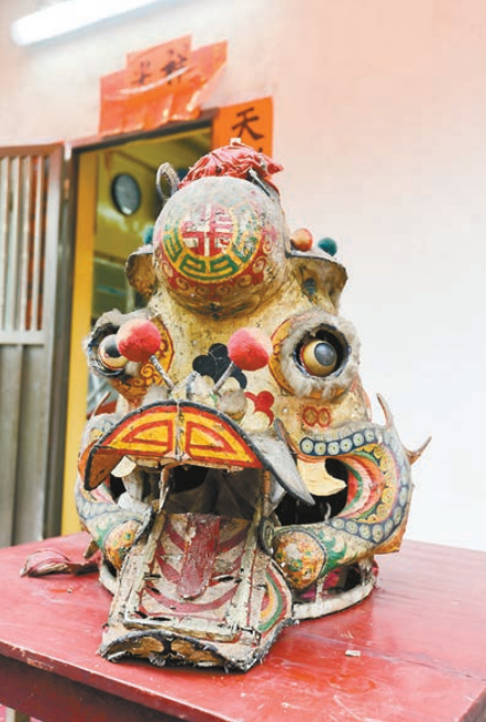 會(huì)內(nèi)歷史最久的麒麟頭,大約於 1990 年紮作,製造者是張秀其中一名兒子張華基。