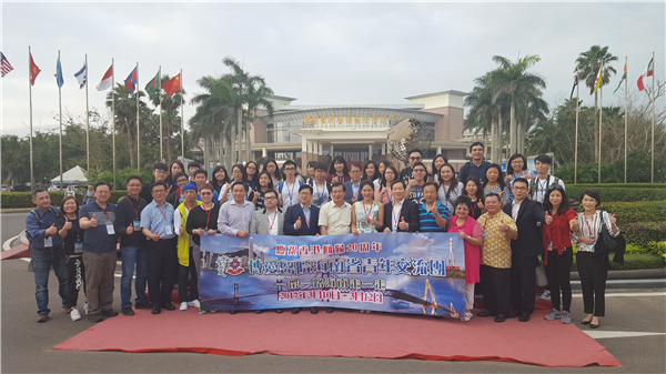 2018年帶領(lǐng)中國(guó)香港海口聯(lián)誼會(huì)百人青年交流團(tuán)參觀博鰲亞洲論壇會(huì)場(chǎng)。