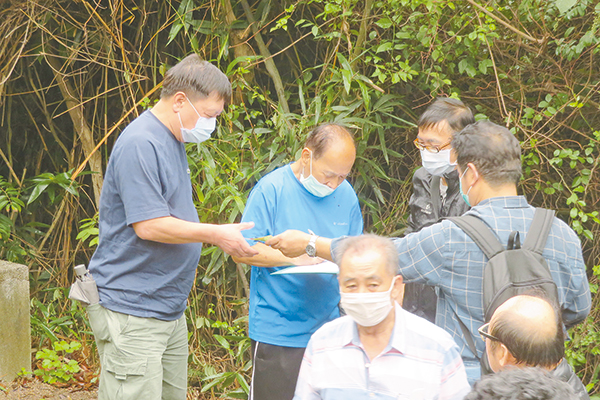 屏山鄧族龍鼓灘春祭取消食山頭,陰濕天雨下,出席族人少,並要輪流拜祭,免同時間聚集太多人。記者 鄭玉君攝