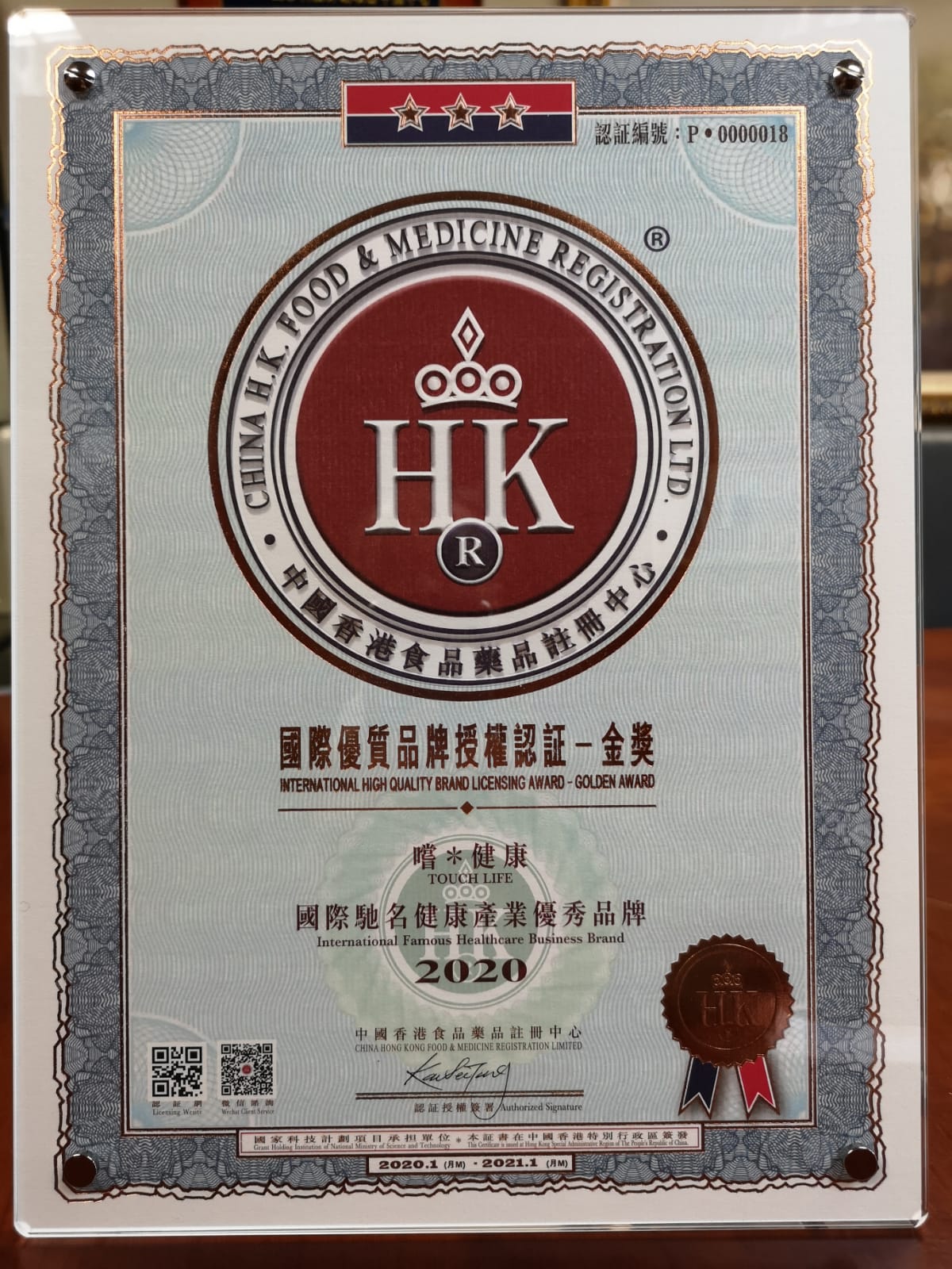 品牌獲香港標準及檢定中心頒授證書。