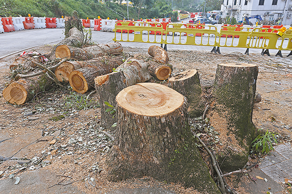 西沙路擴闊工程,令原有的路旁行道樹被斬去,綠色隧道景觀不再出現(xiàn),其中在西澳至輋下之間一段小斜坡,原有六七棵大樟樹,何柏基指最少3人才可環(huán)抱,但2018年底被剷走,他感到十分難過,無奈只可拍下它們的屍骸遺容,在樟樹被斬掉後的三個星期,濃烈的樟樹味仍縈繞不散。