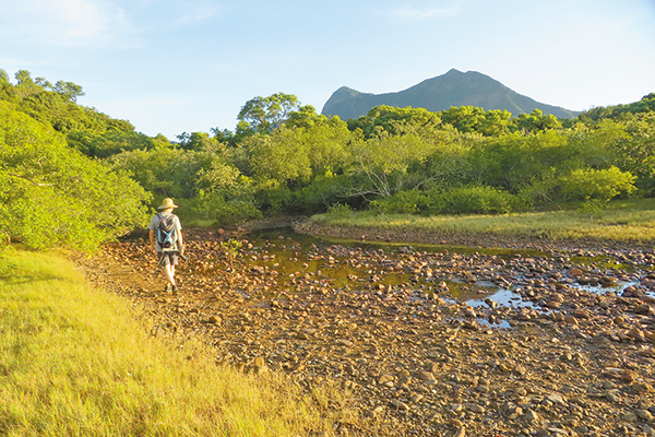 我們的終點是井頭與輋下間的臨海河口及森林,是何柏基目前最想守住的淨土。他擔心發(fā)展引入的大量人流及基建,會令該地漸漸受侵蝕。而森林下的河口,是鹹淡水交界之地,有河溪、草地、石灘。河溪孕育不少生物,逗留半句鐘,已看到很多小魚、小蝦和蟹仔。為拍攝這些淺水中的生物,何柏基常會戴上防水面罩,潛伏水中半小時,他笑言別人看來像極浮屍呢!他又自感拍攝時出現(xiàn)孤獨及疲累,特別是入深山密林時,但仍要繼續(xù),因恐怕沒人知曉十四鄉(xiāng)「原居民」的境況。