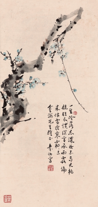 陶壽伯(1901-1997),字知奮,號萬石老人、疇中老人、萬石居士,江蘇無錫人。十五歲即投蘇州名師唐伯謙門下,研習(xí)書法、篆刻、鐫碑諸藝。二十九歲始學(xué)梅,臨汪巢林冊頁及《百梅圖》畫譜,並讀王元章之梅花,三十九歲遂以擅畫梅享譽藝壇。他愛梅成癡,除臨摹前人的真?外,經(jīng)常到梅園觀察研究梅花的神態(tài)。他到晚年總結(jié)畫梅心得,授之於門徒,有「清」、「奇」、「古」、「怪」畫梅幹四字訣。在臺灣有書、畫、篆刻「三絕」之譽和「梅王」之稱。