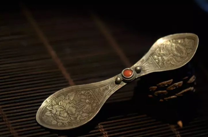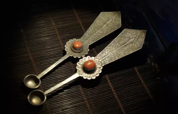 藏式勺子包含了很多藏族藝術(shù)的精髓,包括器型、顏色、工藝,涵蓋范圍非常廣泛。從功能上看,藏式勺子主要分為三種,一種是日常生活使用的勺子,一種是法事所需的法器勺,還有一種是藏醫(yī)專用的有度量功能的勺子。