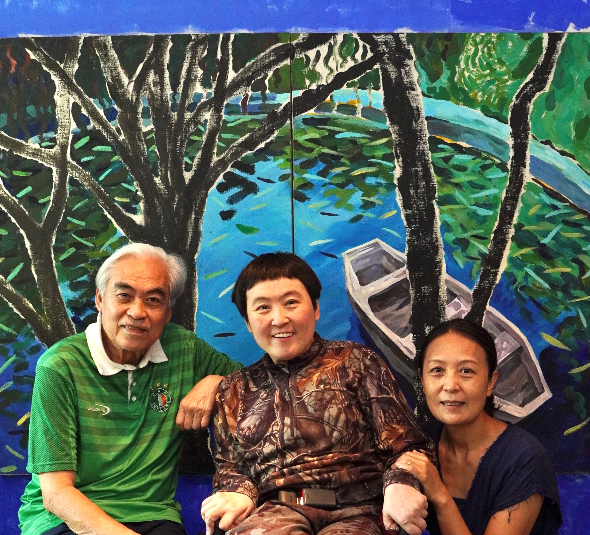 廖東梅(中)很愛笑,性格樂觀、堅(jiān)毅。訪問當(dāng)日廖爸爸(左)及姐姐廖井梅(右)陪伴她身旁一同接受訪問。