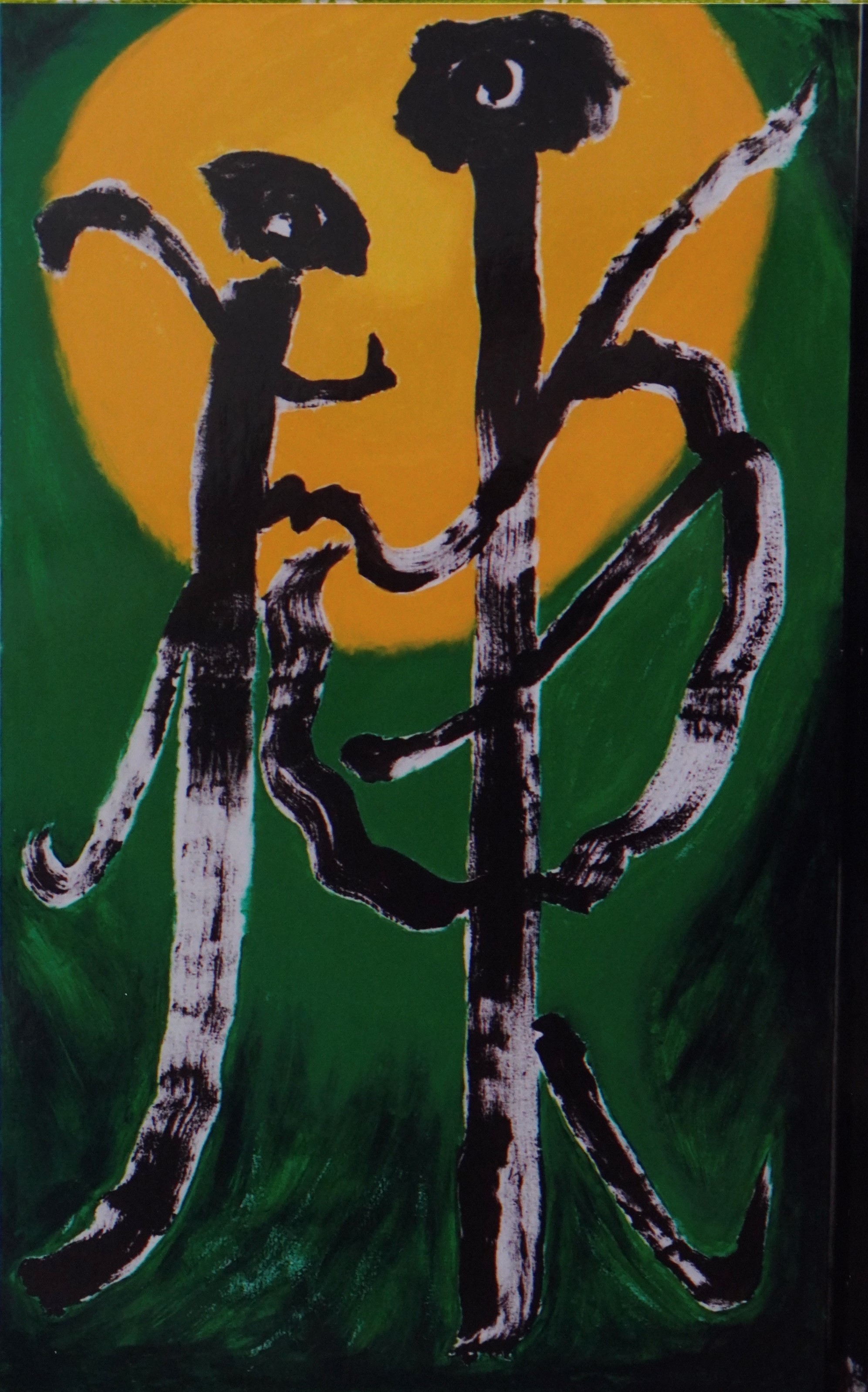 廖東梅為「稻鄉(xiāng)飲食文化博物館」創(chuàng)作的甲骨文畫作《神——昇華信仰》,2005年。