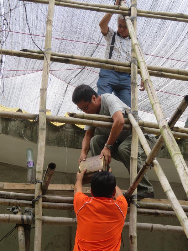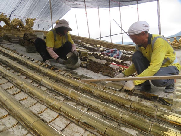 協(xié)天宮的重修工程還要進(jìn)行年多兩年才完成,現(xiàn)在頂部正鋪金瓦,工人說(shuō)已鋪了個(gè)多星期,估計(jì)3周內(nèi)鋪完,共鋪6000多塊。(記者 鄭玉君)