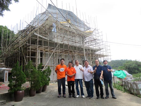 南涌村代表與嘉賓在協(xié)天宮前合照,左三是沙頭角區(qū)鄉(xiāng)事委員會(huì)主席李冠洪,左二為南涌居民代表鄭光明。記者鄭玉君攝