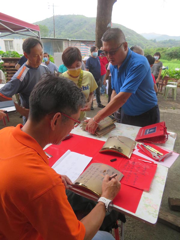 鄭光明說(shuō),1962年重建時(shí)有上瓦儀式,今次是隔了58年再次舉行。按傳統(tǒng),瓦片會(huì)寫上村民祝福語(yǔ),主要祈求合家平安、家族繁衍,事事順利等。鄭說(shuō),從前只有男丁寫,但時(shí)代已轉(zhuǎn)變,現(xiàn)在女村民甚至外來(lái)善信也可寫,寫了約200塊。至於上瓦在仲秋,仲秋是為秋季的第二個(gè)月,即農(nóng)曆八月,是古時(shí)說(shuō)法。民間則稱為中秋。中秋象徵團(tuán)圓,在中秋時(shí)開(kāi)始上瓦特別吉利。