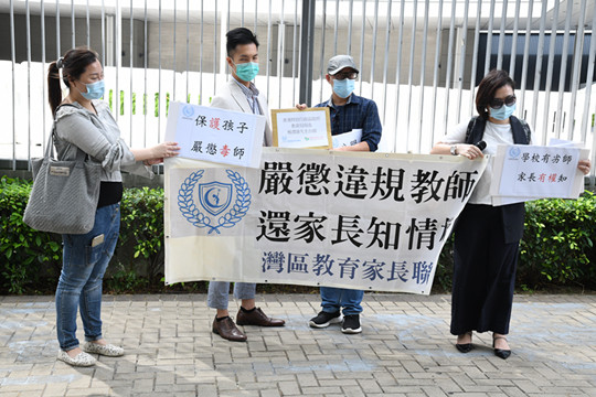 灣區(qū)教育家長(zhǎng)聯(lián)會(huì)及一群反對(duì)政治勢(shì)力滲透校園的家長(zhǎng)今日(15日)到政總請(qǐng)願(yuàn),並向教育局遞交請(qǐng)願(yuàn)信,要求局公平公正對(duì)待家長(zhǎng)投訴,嚴(yán)查嚴(yán)辦所有涉嫌教育失德個(gè)案,並公開(kāi)教師牽涉刑事罪行、失德的所有個(gè)案詳情,包括教師資料、所屬學(xué)校、懲處結(jié)果,還家長(zhǎng)與公眾知情權(quán)。