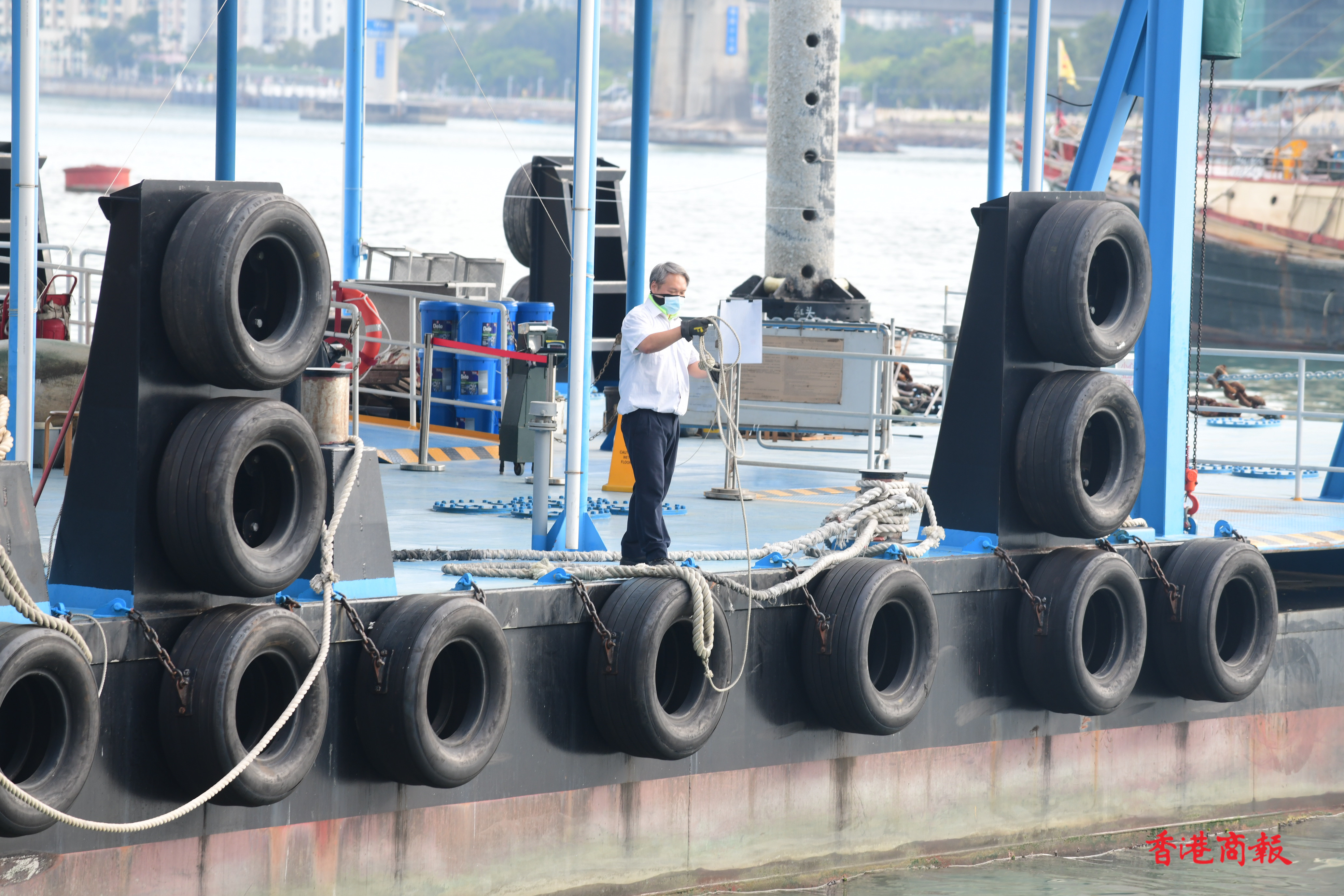 從前,荃灣碼頭是有渡輪來回中環(huán)統(tǒng)一碼頭嘅,但係因?yàn)槲鲄^(qū)海底隧道通車,令到來往荃灣區(qū)同港島區(qū)之間嘅車程縮短好多,所以搭船人客下降, 最後只好取消渡輪航線。荃灣碼頭原本是綜合大樓,裏面有入境事務(wù)處等政府部門辦公,去連接隔籬嘅荃灣運(yùn)輸大樓,但因?yàn)榫艔V西鐵(即西鐵綫)嘅工程,碼頭部份清拆同埋進(jìn)行填海,政府部門亦都搬走。而家嘅躉船碼頭係工程完成之後起嘅。(崔俊良 攝)
