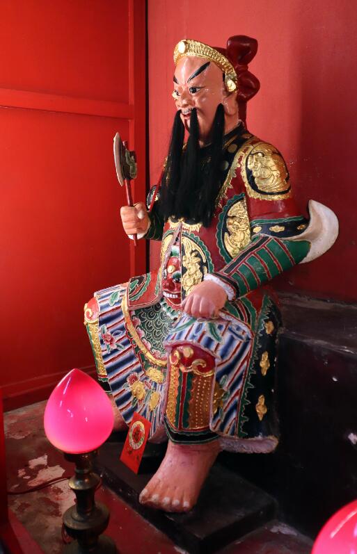 廟內(nèi)側(cè)殿的車公像赤腳持斧,造型特別。