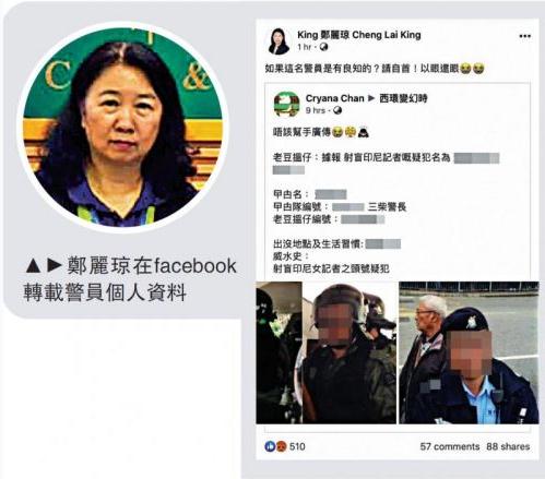 鄭麗瓊在facebook轉(zhuǎn)載警員個人資料