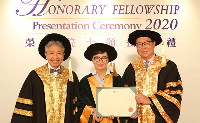 圖為何巧嬋獲香港教育大學(xué)頒發(fā)榮譽(yù)院士銜。