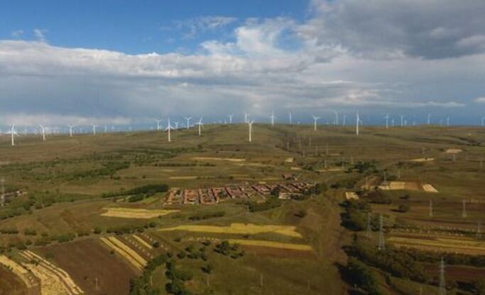 9月壩上,藍(lán)天、草原、旋轉(zhuǎn)的巨大“風(fēng)車”相互映襯。這裏是國家規(guī)劃的9個千萬千瓦級風(fēng)電基地之一,將助力北京冬奧會成為“綠色冬奧”。