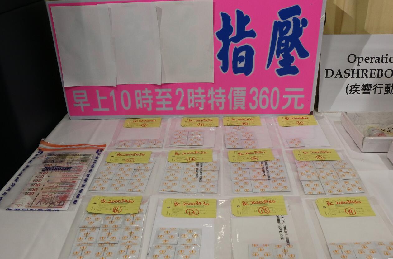 警方在行動(dòng)中,合共檢獲10部釣魚機(jī)、約2.2萬隻色情光碟、約34克「K仔」、約7克冰毒、約6克可卡因、約5克霹靂可卡因、一批酒精類飲品、約2.4萬元現(xiàn)金等,行動(dòng)中所檢獲的證物,總值逾70萬港元。