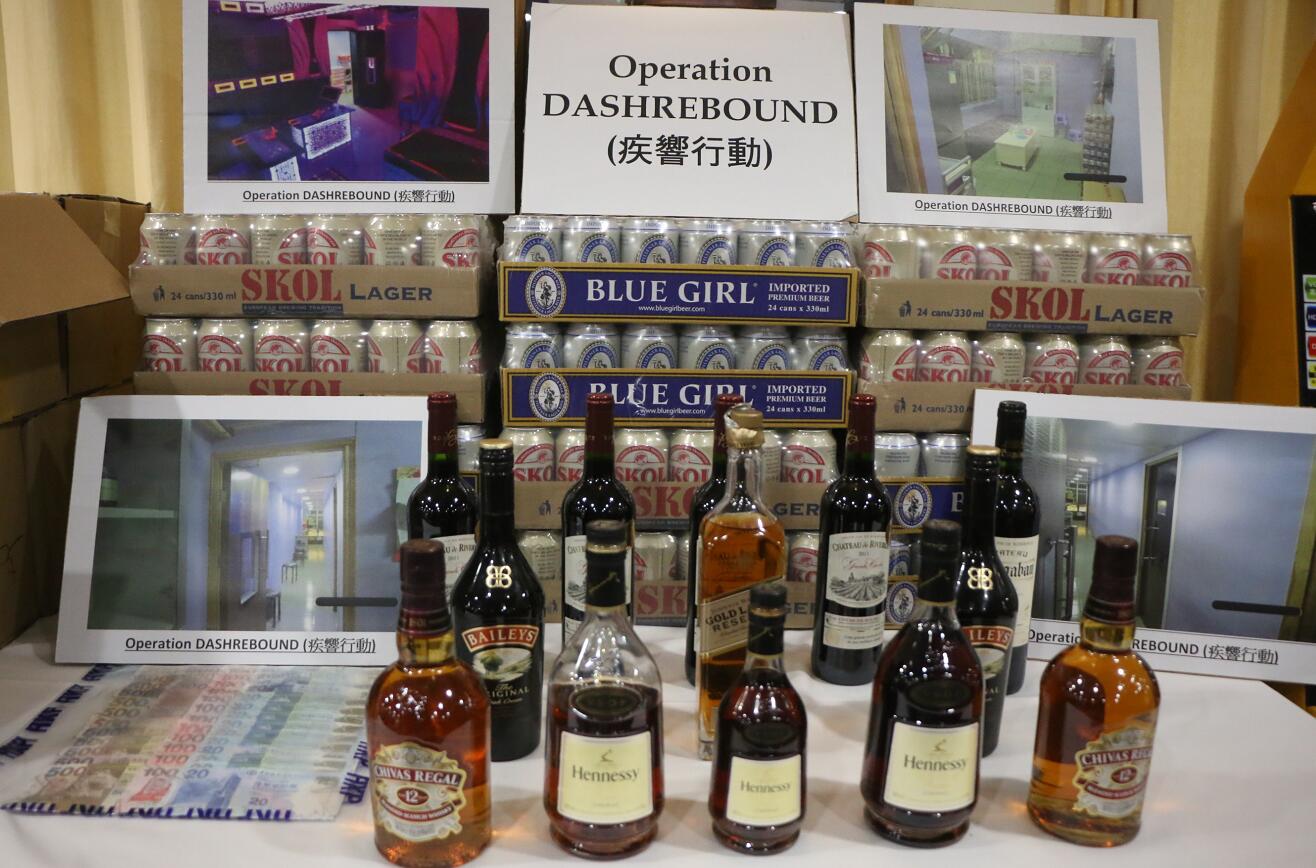 警方在行動(dòng)中檢獲大批烈酒及啤酒。
