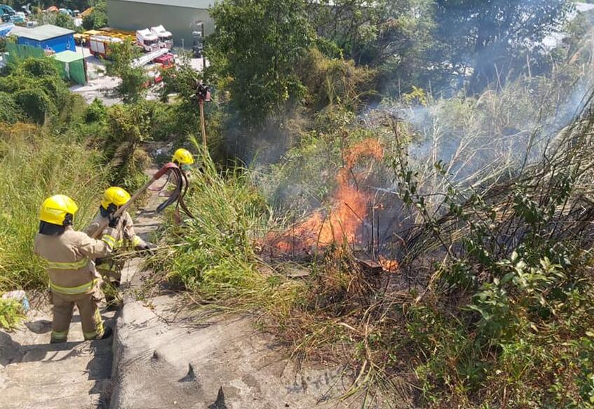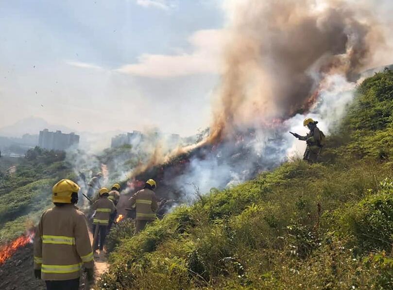 本港在重陽節(jié)當(dāng)日多區(qū)發(fā)生涉及掃墓的山火,消防員到場救火。(香港消防處FACEBOOK圖片)