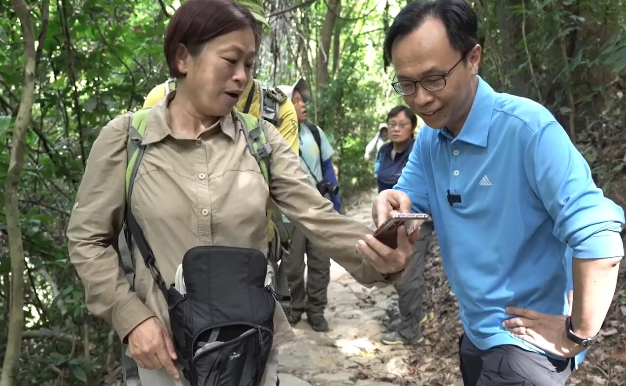 聶德權(quán)在巡視郊野公園時與行山人士寒喧