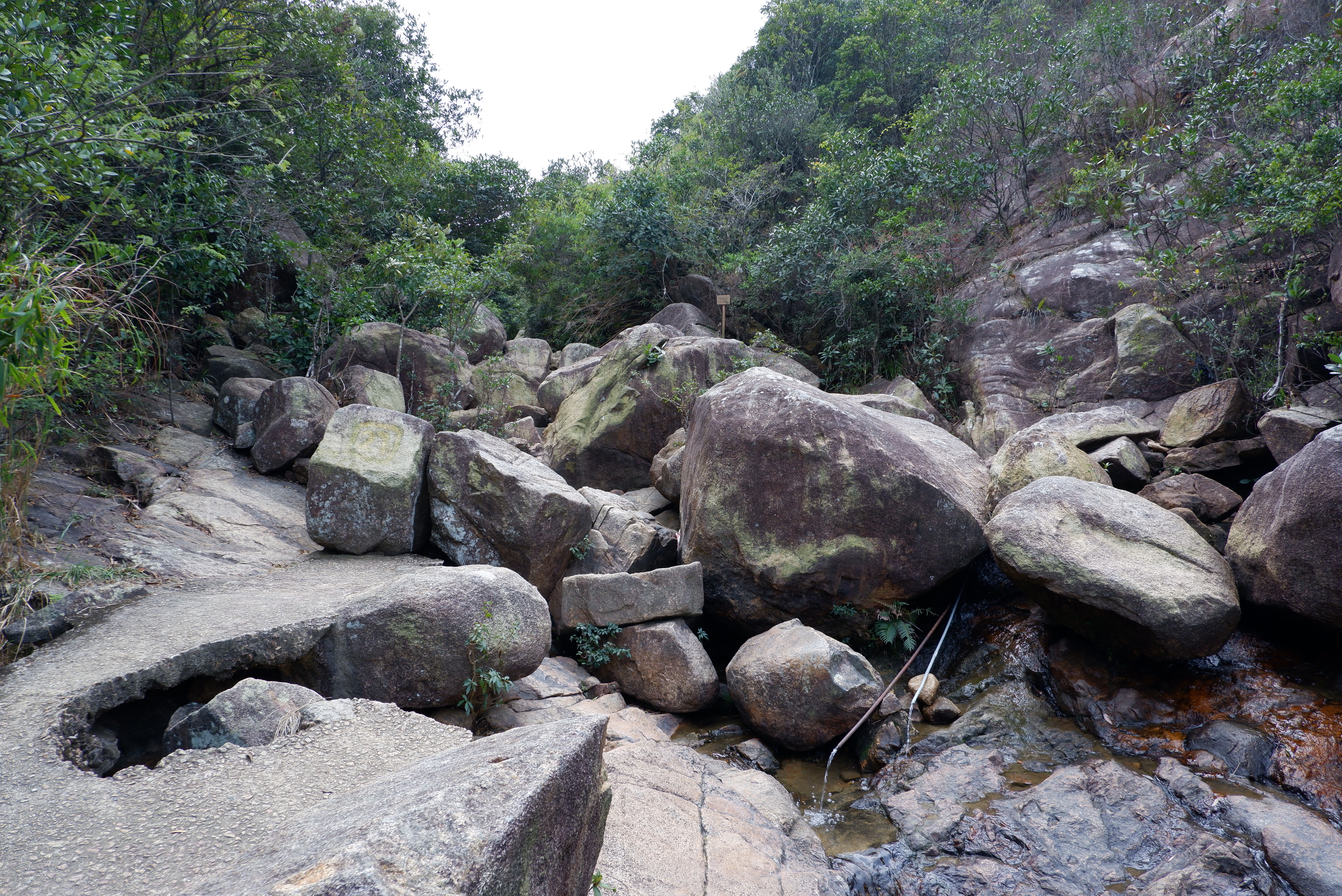 行山人士可選擇行左邊的山徑又或右邊的大石溪澗。
