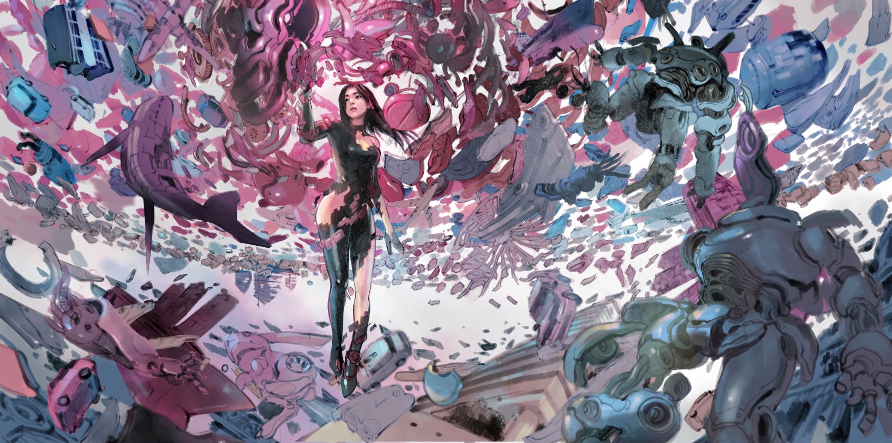 畫作將機(jī)械元素與女性人像結(jié)合。