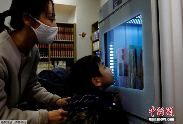 資料圖:疫情期間,日本一所圖書館用紫外線給圖書做消毒處理。