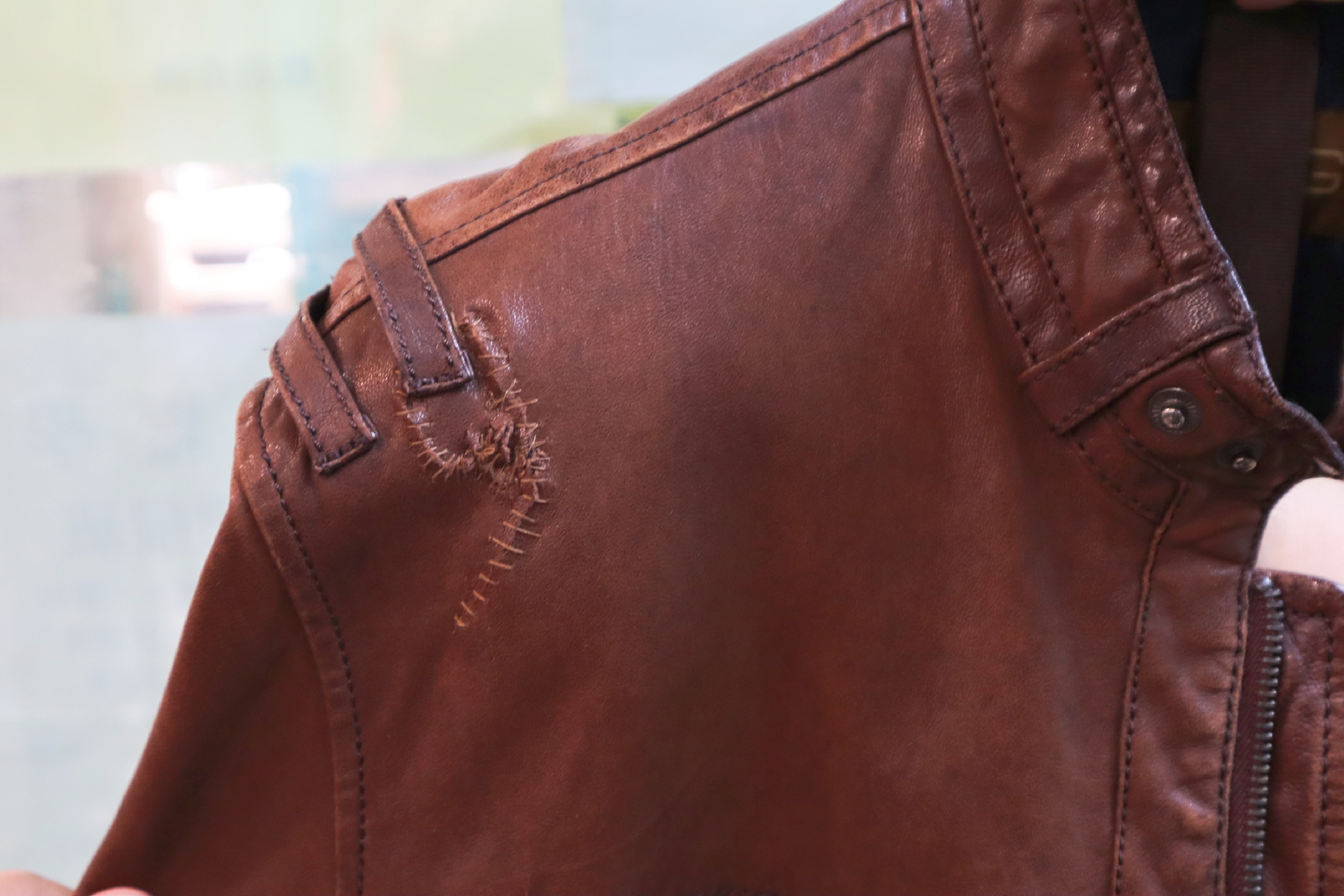 蔡太指保養(yǎng)皮褸大有學(xué)問,而且若破爛了也不容易修補(bǔ)。如這件皮褸肩膀損壞,蔡太計劃將破損的肩膀位換成黑色皮革,兩邊對稱,設(shè)計成拼色皮褸。改衣除了靠一雙巧手,也要有創(chuàng)意。