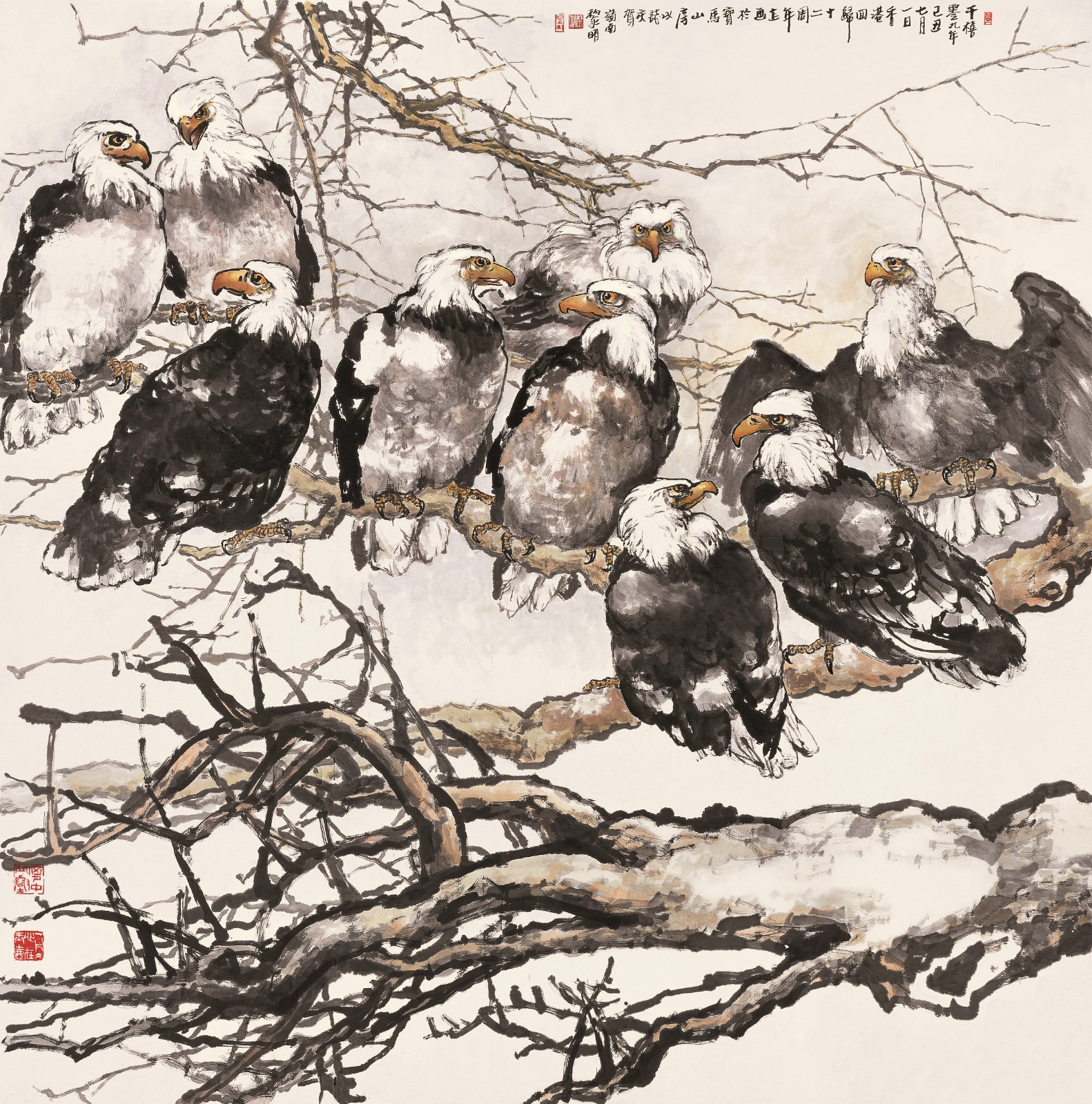 黎明作品《秋原健翮》,2009年,183×183cm。此作入選第十一屆全國美展。