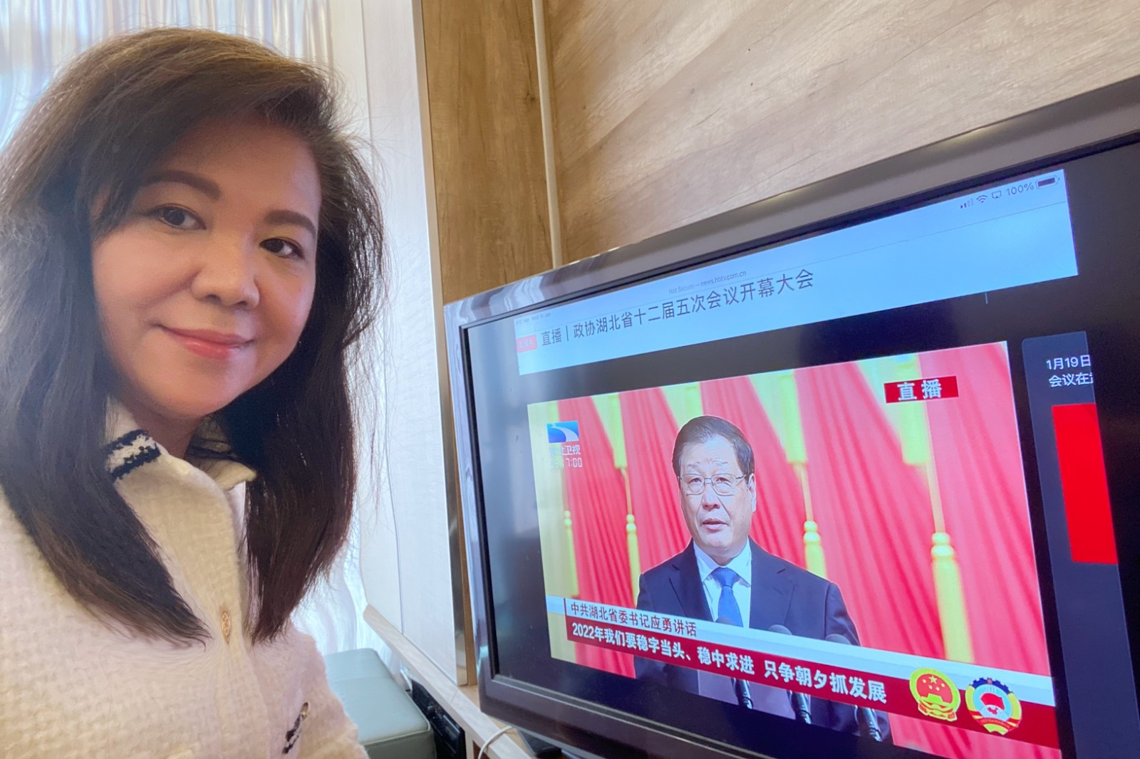 湖北省政協(xié)港區(qū)委員、香港選舉委員會(huì)基層社團(tuán)選委、香港島婦女聯(lián)合會(huì)主席、香港島各界聯(lián)合會(huì)副理事長(zhǎng)金玲表示,這是她自從擔(dān)任第12屆港區(qū)湖北政協(xié)委員以來,第一次以雲(yún)端連線的形式線上參會(huì)。雖然由於疫情嚴(yán)峻,未能飛到武漢現(xiàn)場(chǎng),深感遺憾,但所有流程都是按親身與會(huì)的要求來參與。