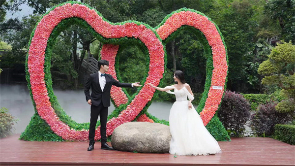 「羅浮山的景色太美了,空氣非常好!看到景區(qū)這邊有搞活動(dòng),早早就跟老伴一塊來預(yù)定拍攝,感覺特別好,服務(wù)特別周到」一個(gè)穿著白色婚紗的女士如是說。