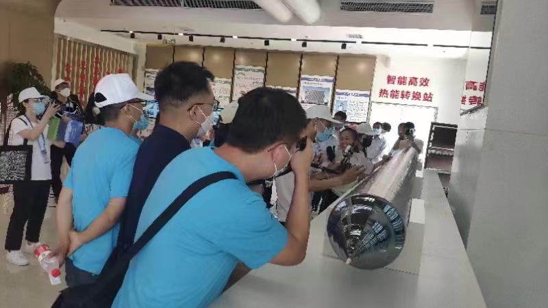 在能源島主建築樓頂上,一排排像鏡面一樣反光的太陽能光熱裝置,在迎著太陽轉(zhuǎn)動。這種太陽能光熱利用有三種形式:塔式、槽式和菲涅爾式,菲涅爾式利用反射鏡,將太原光反射至上方的集熱管,加熱集熱管內(nèi)的流體,溫度可達(dá)90-350℃,為建築物供熱或供蒸湯,適用於城中村和單棟別墅供熱。
