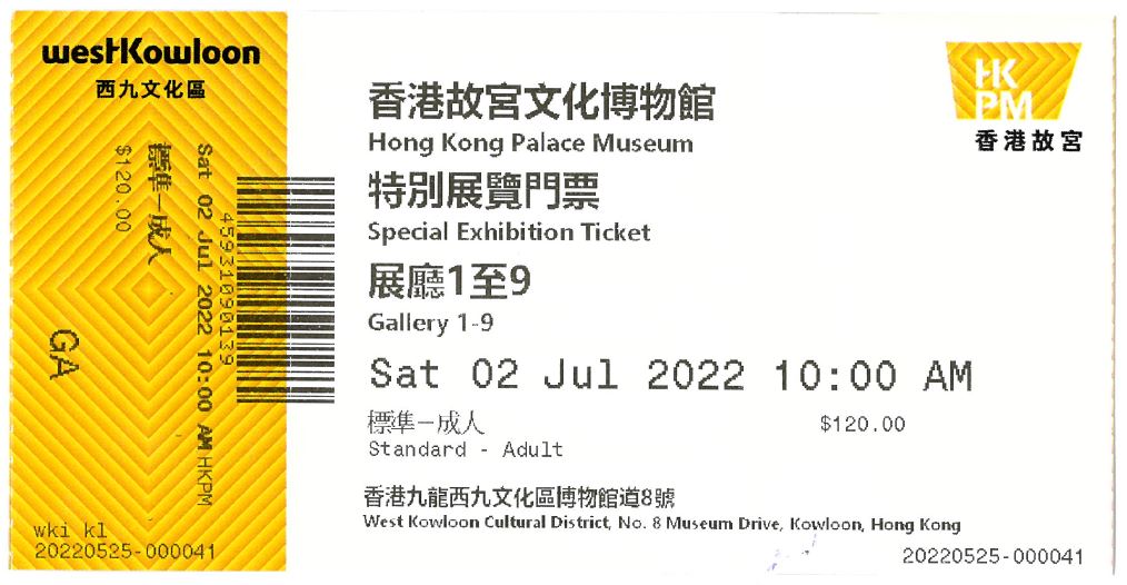 香港故宮文化博物館門票。(圖:香港故宮文化博物館)
