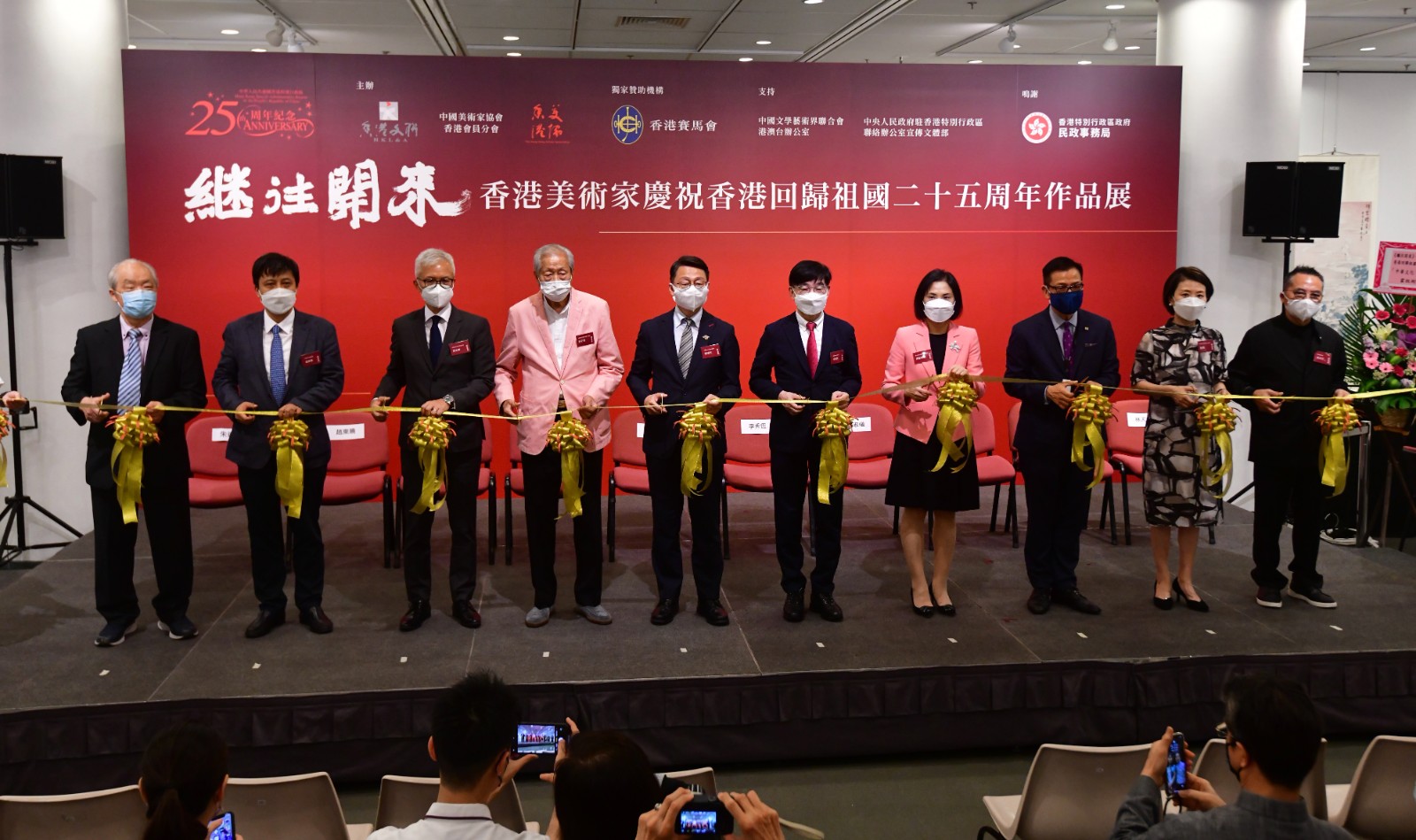 為慶祝香港回歸25周年,中國文學藝術界聯(lián)合會香港會員總會(香港文聯(lián))、香港美協(xié),及中國美術家協(xié)會香港會員分會合辦的「《繼往開來》——香港美術家慶祝香港回歸祖國25周年作品展」於即日起至6月29日(星期三),在香港中央圖書館地下1至5號展覽館舉行?;顒佑上愀圪愸R會贊助,支持香港政府為慶祝回歸25周年而舉辦的多個項目之一,並會展出逾200名香港當代中西畫家、雕塑家、新媒體藝術家的全新創(chuàng)作。