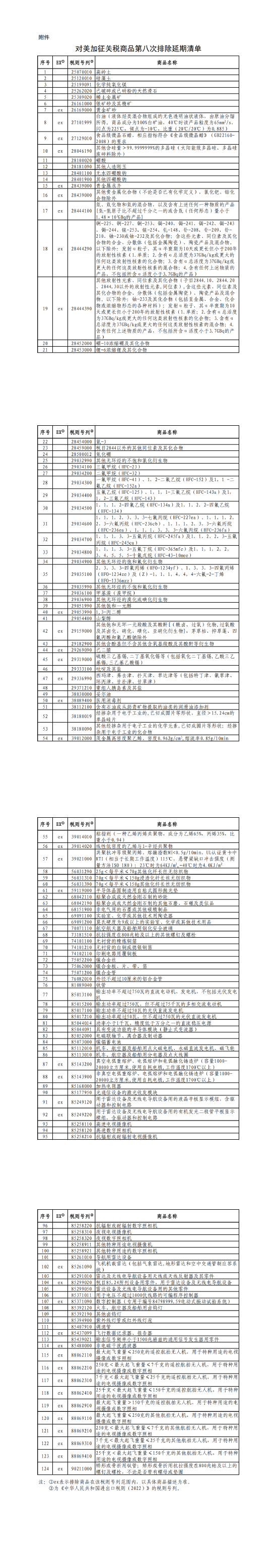 附件:對美加徵關(guān)稅商品第八次排除延期清單