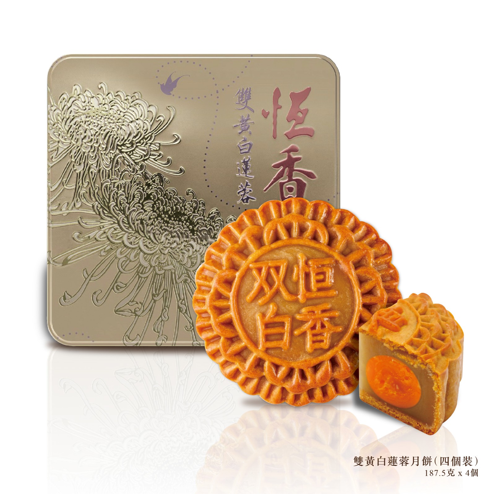 雙黃白蓮蓉月餅(187.5克x 4個(gè)),價(jià)格HK$382,早鳥(niǎo)優(yōu)惠價(jià) HK$223(即日起至8月10日)、 HK$242 (8月11日至9月10日)。