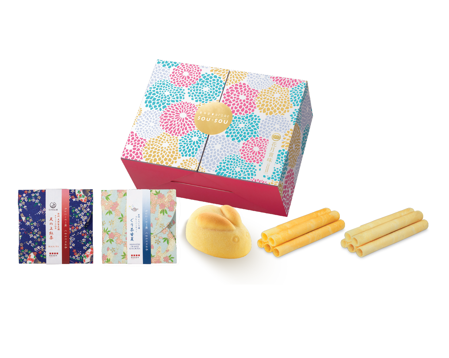品牌首度與日本京都設(shè)計(jì)商SOU?SOU聯(lián)乘,推出「花月賞味」禮盒,盒內(nèi)分兩層,一層是招牌兔子奶黃月餅,月餅外皮酥香包裹著濃濃椰香,加上德島縣和三盆糖帶來(lái)的溫和甜度,甜而不膩。另一層是人氣北海道3.6牛乳蛋白卷及經(jīng)典香濃牛油蛋卷,並配有兩款日本直送的天上紅茶和綠茶甘夏茶包。另外,還有聯(lián)乘的「時(shí)尚餐盤組合」,餐盤上印有SOU?SOU經(jīng)典的十?dāng)?shù)圖樣。套裝內(nèi)含一大一小托盤,分別是長(zhǎng)方形及正方形,小巧實(shí)用。
