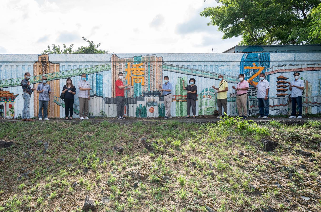 眾嘉賓為鄉(xiāng)情畫意彩繪計劃荃灣區(qū)天橋之城壁畫舉行收筆禮。 馬會提供圖片