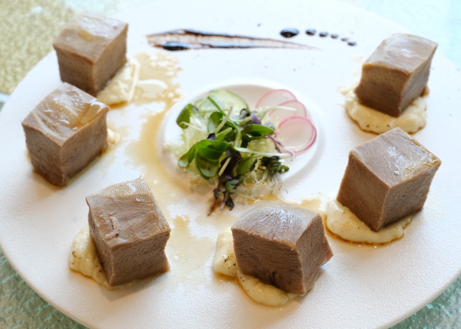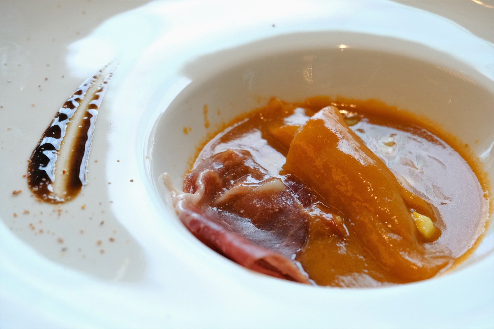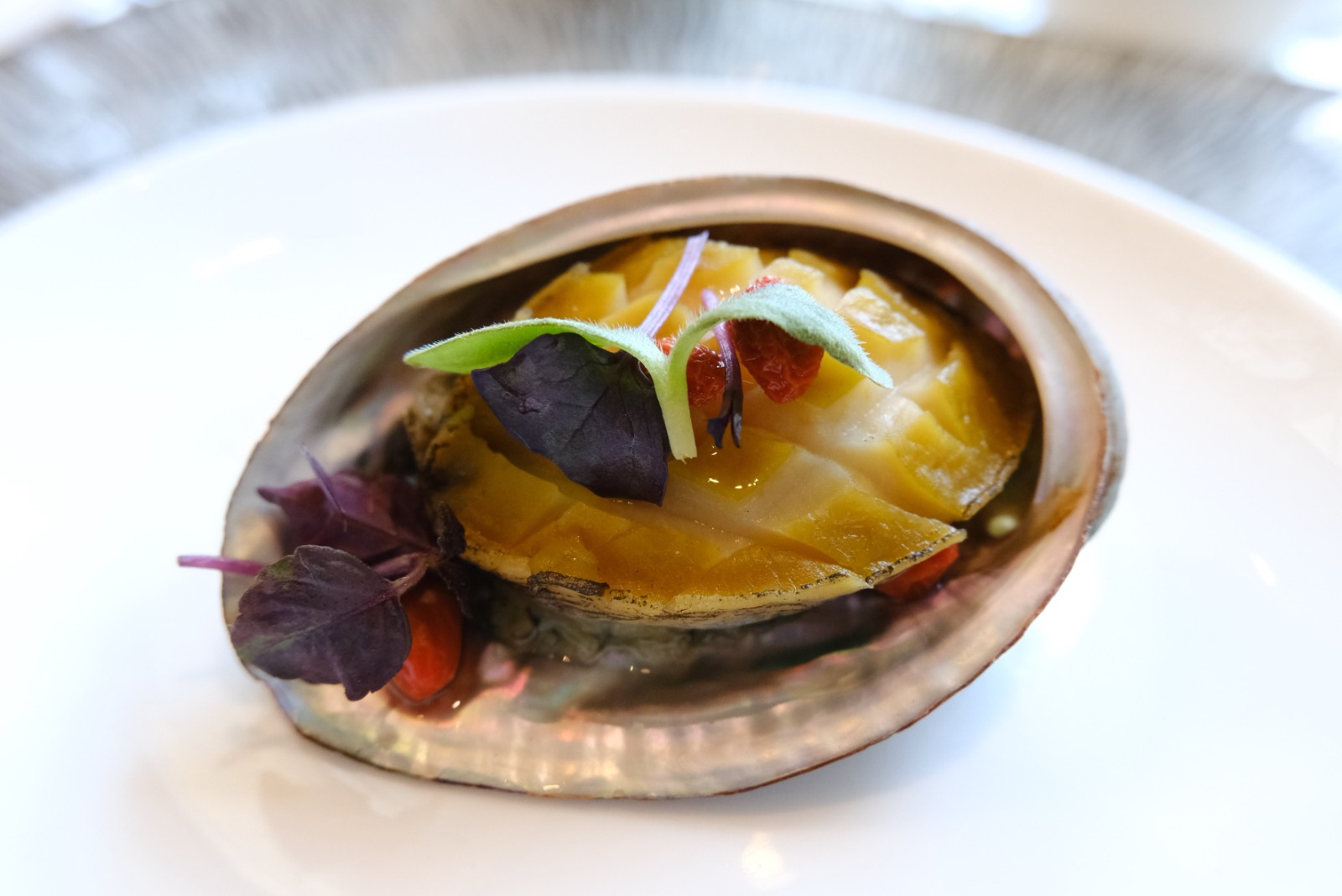 這場秋日盛宴並有兩款前菜,醉香鮑魚(每隻HK$68)精選臺(tái)灣九孔鮑魚,肉質(zhì)爽口彈牙,以花雕浸泡連殼鮑香,取其醇香細(xì)膩的韻味。另一道滷水和牛脷(HK$138)以陳年滷水炮製澳洲和牛脷,滷水出自酒店傳家之寶陳年滷水膽,積澱陳香細(xì)味,搭配牛脷邊位,質(zhì)感軟腍入味。