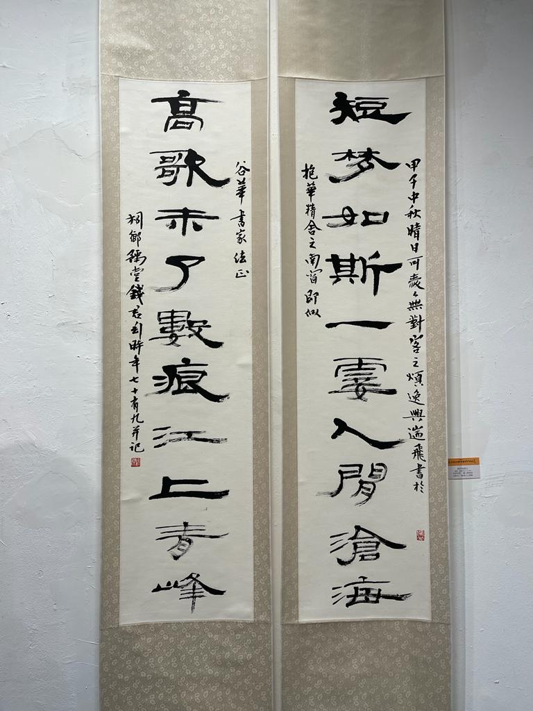 展覽展示了戚谷華的老師——錢君匋的作品《短夢如斯 一霎人間滄海 高歌未了 數(shù)痕江上青峰》。