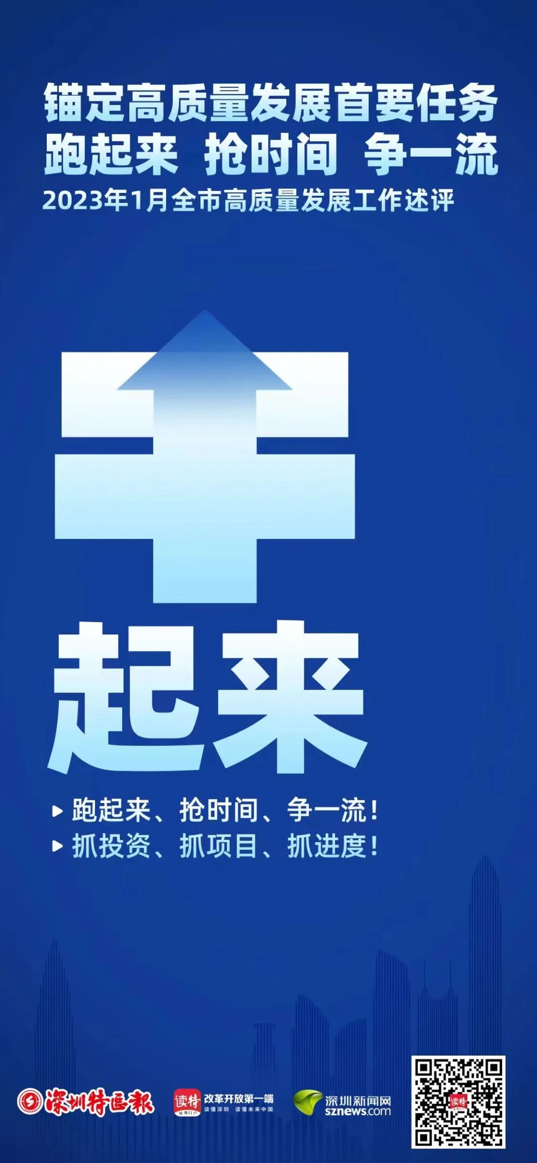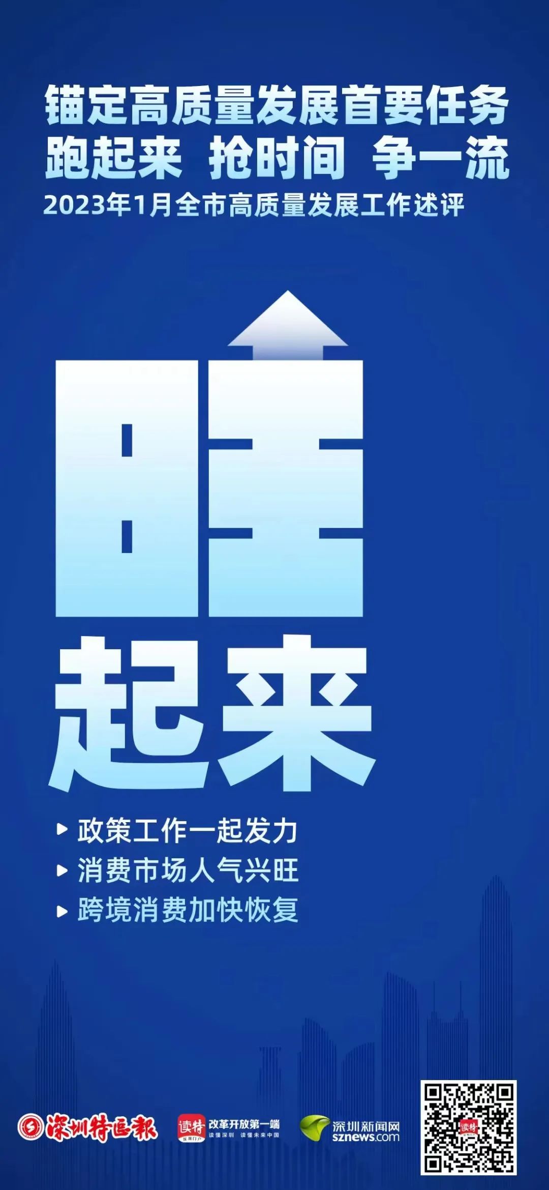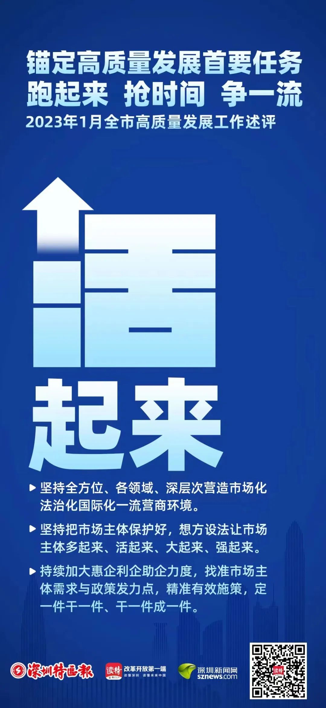 發(fā)展是第一要務(wù),是當(dāng)前最重要的工作。人勤春來早。深圳全面系統(tǒng)深入學(xué)習(xí)貫徹黨的二十大精神、中央經(jīng)濟工作會議精神,深入學(xué)習(xí)貫徹習(xí)近平總書記對廣東、深圳系列重要講話和重要指示精神,落實全省高質(zhì)量發(fā)展大會精神和省委省政府部署要求,動起來、跑起來、幹起來:市委經(jīng)濟工作會議謀定全年經(jīng)濟「施工圖」,全市高質(zhì)量發(fā)展大會擂響奮鬥戰(zhàn)鼓,集中開工266個重大項目促發(fā)展強後勁,主要領(lǐng)導(dǎo)同志既走訪大企業(yè),也與中小微企業(yè)、個體工商戶充分交流,共商做強做優(yōu)做大市場主體大計,市區(qū)政府紛紛走出去奔赴全球招商引資、招才引智……