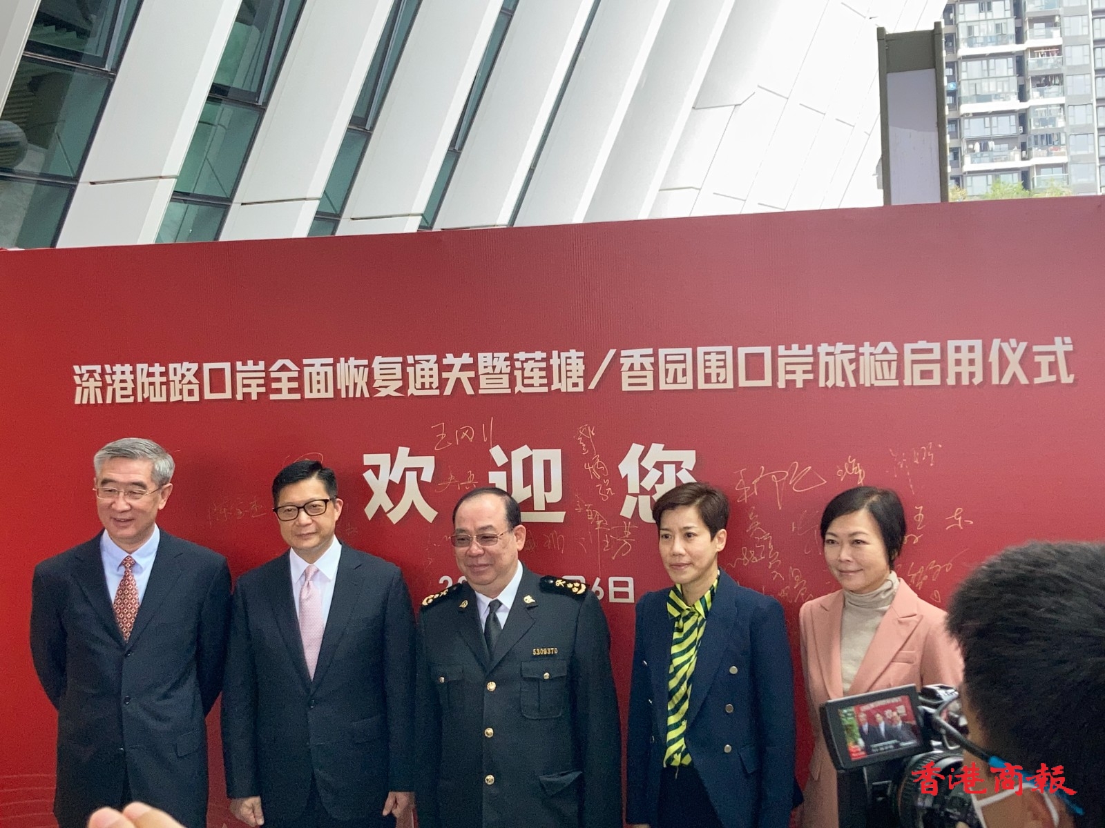 深港陸路口岸全面通關(guān)暨蓮塘/香園圍口岸旅檢啟用儀式6日上午舉行,香港特區(qū)政府保安局代表和深圳市口岸辦代表出席并致辭。(記者蔡易成 喬凱)