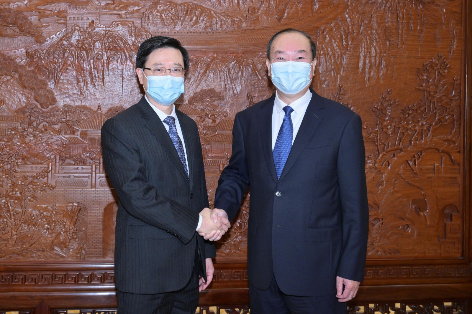 李家超(左)在深圳與深圳市委書記孟凡利(右)會面。