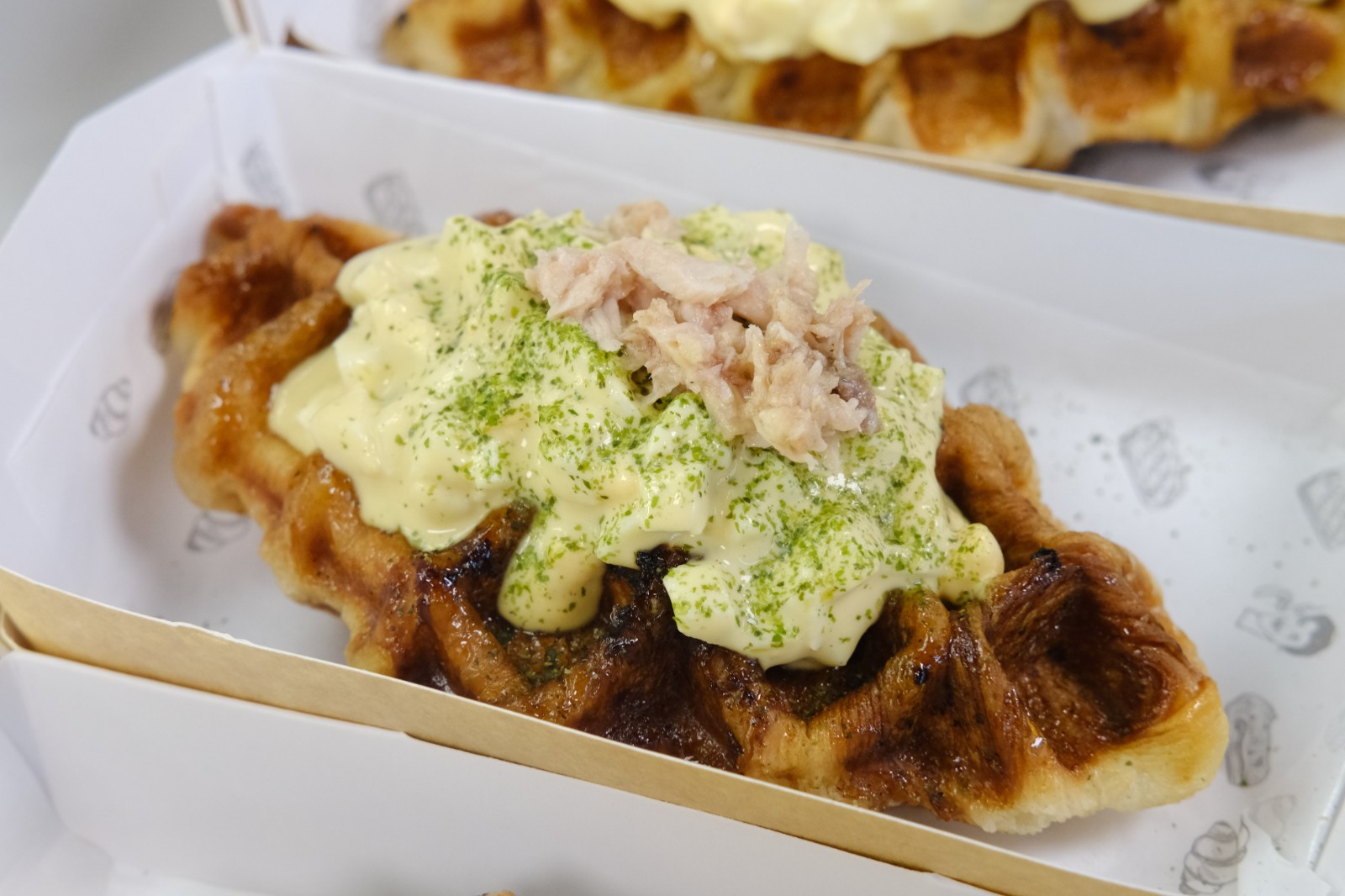 吞拿魚日式蛋沙律窩夫由滑嫩的吞拿魚和蜜糖芥末醬製作的蛋沙律組合而成。