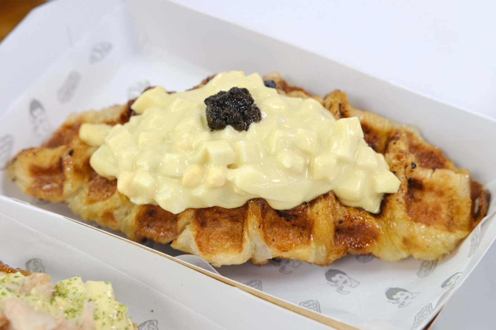 黑松露日式蛋沙律窩夫,淡淡的黑松露香氣與香脆窩夫十分搭配,鹹鹹甜甜。