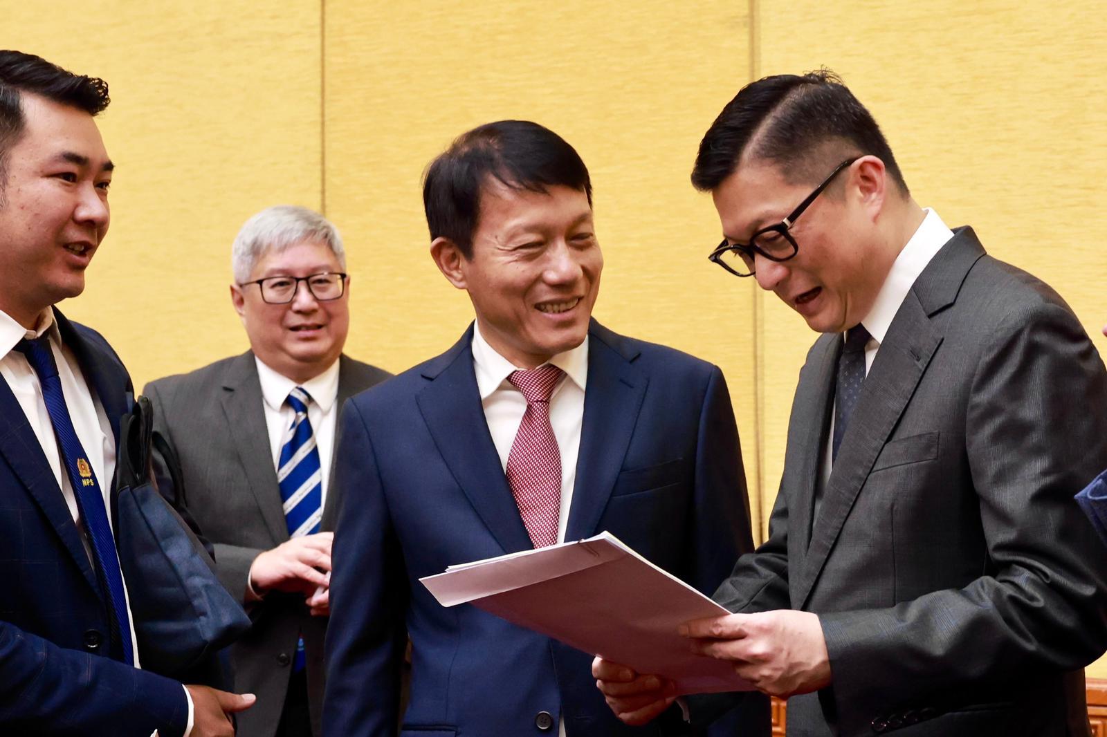 保安局局長鄧炳強正在越南訪問,他今午(28日)在社交平臺發(fā)文表示,今早與入境處處長區(qū)嘉宏拜訪越南公安部,並與當?shù)毓膊扛辈块L梁三光會面,雙方就打擊有組織犯罪、網絡安全及打擊非法入境者的經驗交流。