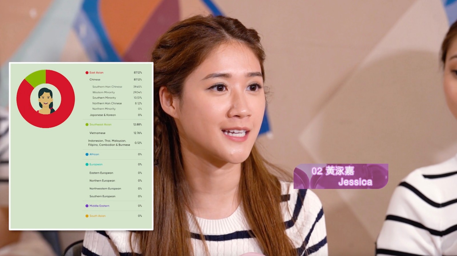 參賽佳麗通過簡單的唾液採樣,收到超過500項DNA報告,涵蓋祖源、飲食、營養(yǎng)、運動、癌癥風險、家庭計劃等多個範疇。如其中一位佳麗擁有12%越南血統(tǒng),另有兩位佳麗擁有非洲血統(tǒng),而其中更同時有日本、韓國、東南亞和越南的祖源特徵。除祖源資料外,報告亦發(fā)現(xiàn)了佳麗的潛在才能。其中一位展現(xiàn)出高度的創(chuàng)造力、舞蹈能力和音樂天賦,預(yù)示她在藝術(shù)領(lǐng)域有很大的潛力。另一位參賽佳麗以卓越的語言能力脫穎而出,亦有呈現(xiàn)出數(shù)學天賦的參賽佳麗。