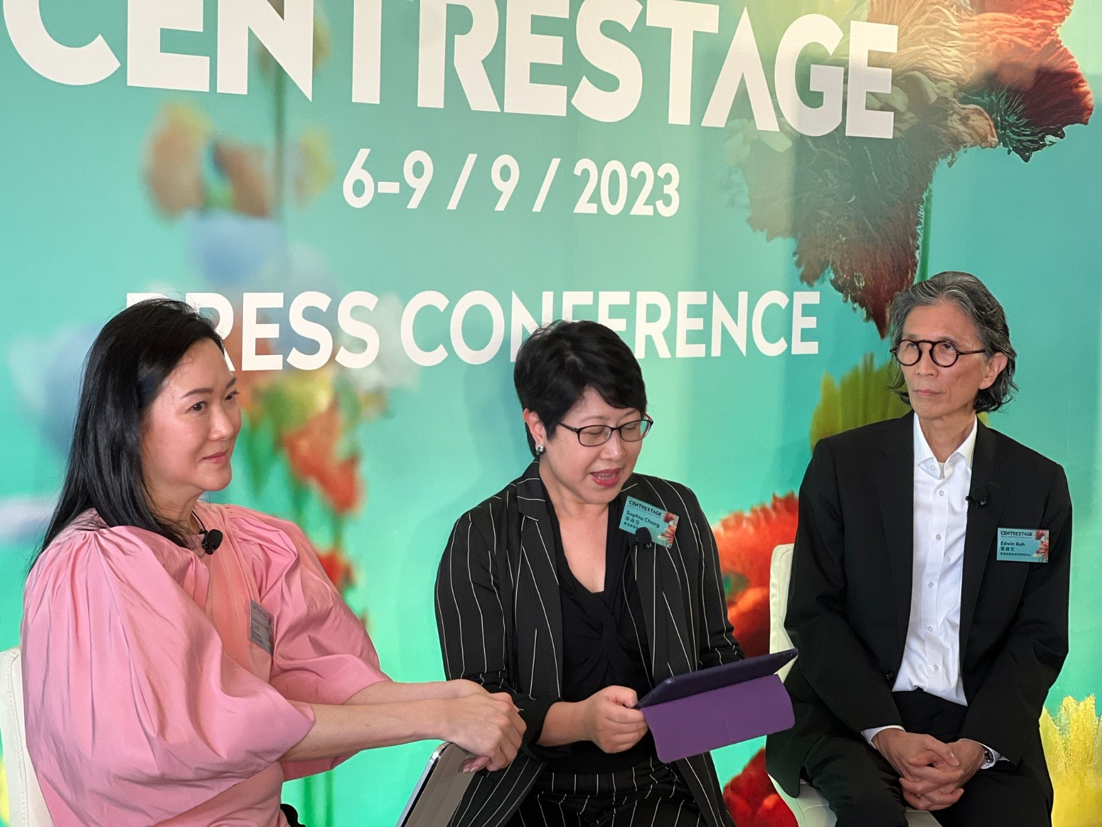 香港貿發(fā)局署理總裁張淑芬(中)、香港貿發(fā)局成衣業(yè)諮詢委員會主席方淑君(左)和香港紡織及成衣研發(fā)中心行政總裁葛儀文(右)於CENTRESTAGE新聞發(fā)布會分享展會亮點和業(yè)界趨勢。